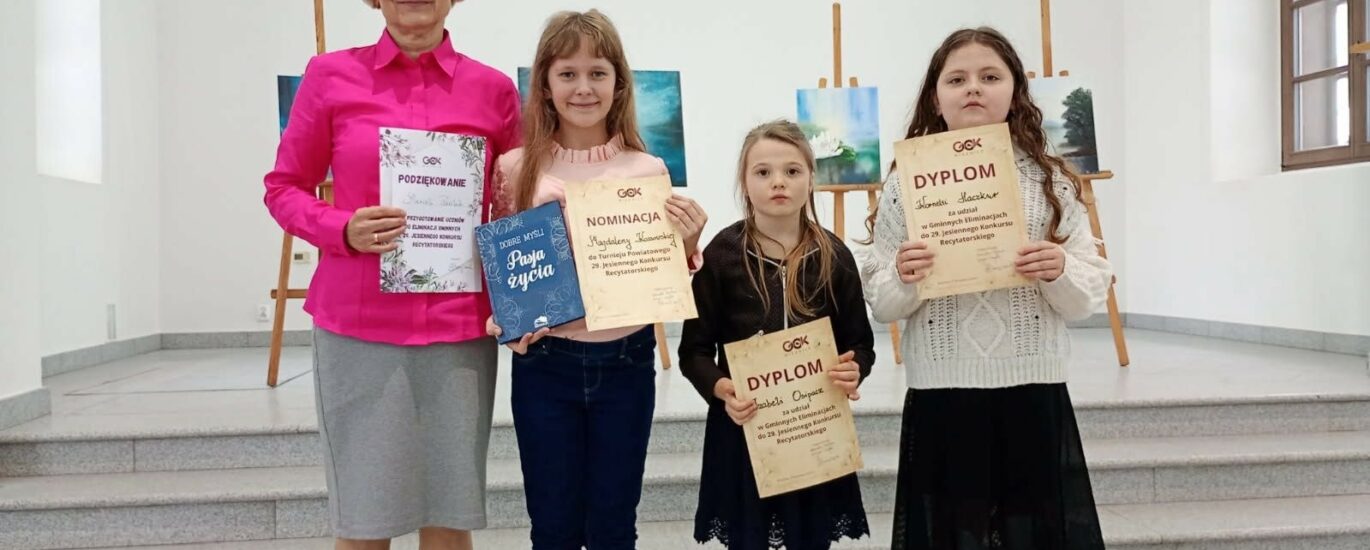29. Jesienny Konkurs Recytatorski – etap gminny w Wisznicach za nami. Nominację do etapu powiatowego otrzymała Magdalena Kossowska z klasy III. Gratulujemy serdecznie! Brawa dla wszystkich uczestników – za reprezentowanie naszej szkoły, a przede wszystkim za odwagę i chęci do podejmowania takich wyzwań.